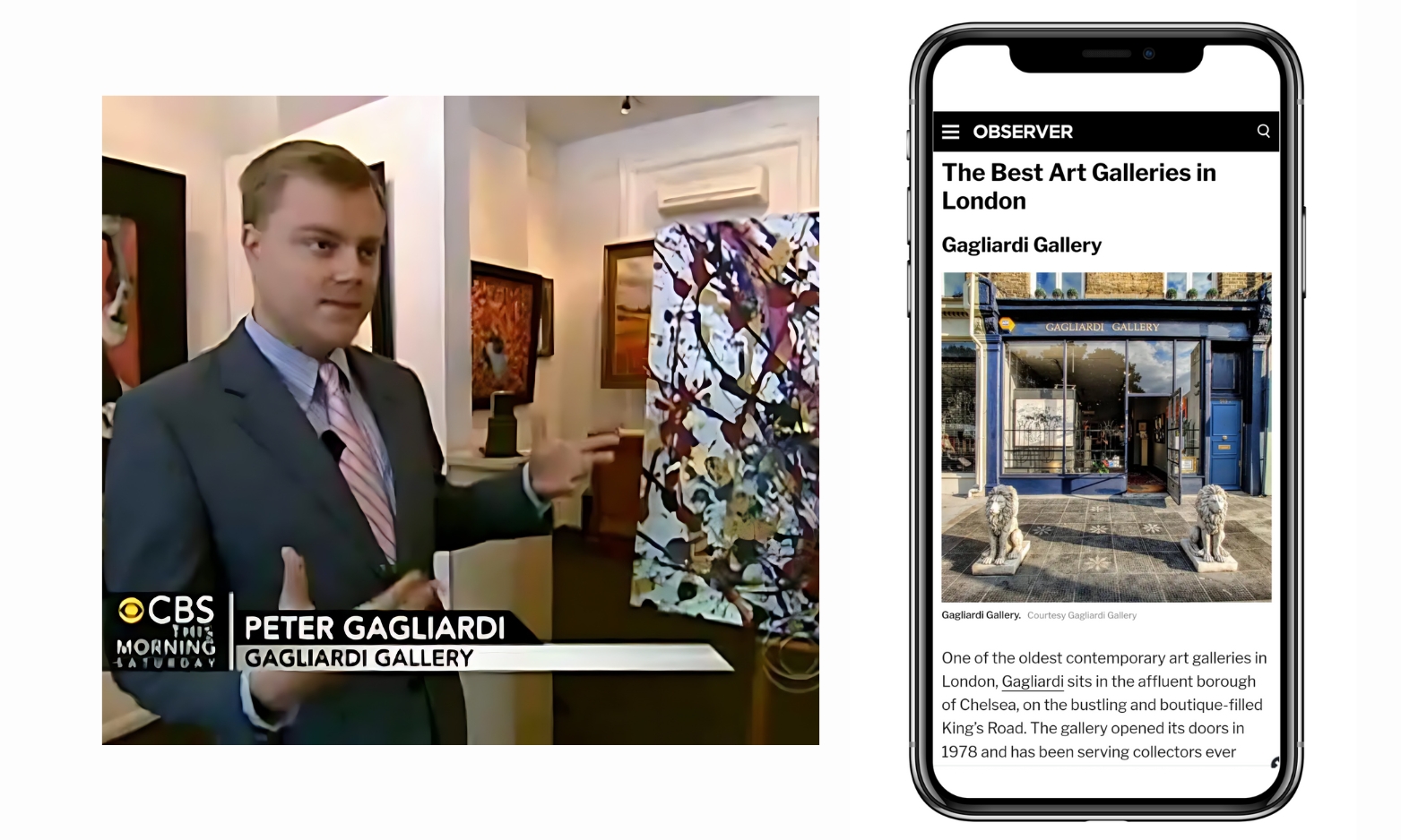 Peter Gagliardi, the son of Roberto and Marie, has continued to build on his parents’ legacy. An acclaimed art expert, Peter has contributed his insights on various international platforms, including ITV’s ‘Posh Pawn’, ABC News, Al Jazeera and CGTN (China Global Television Network). His expertise and charismatic presence have made significant contributions to the art world and brought a wider recognition to the gallery.